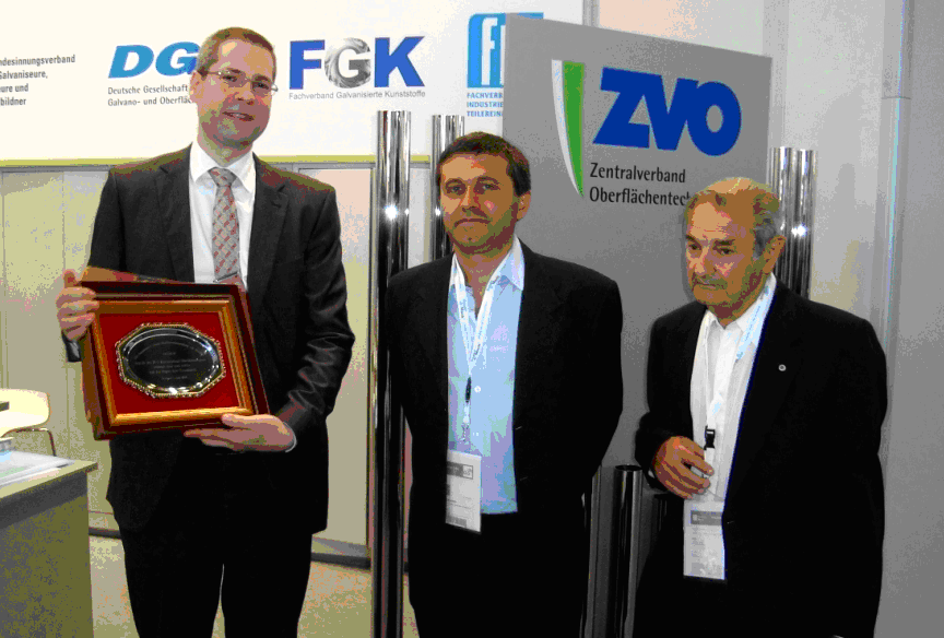 Ambas ferias concentraron 353 empresas que exhibieron sus productos y servicios, además de los stands institucionales, dentro de los cuales se destacaron los de las regiones de BadenWurtemberg, Bayern y Nord Rhein Westphalen, espacios que fueron compartidos por varias universidades y centros e investigación y capacitación, como el Fraunhofer Institut. En el centro de la muestra se ubicaba el stand de nuestra cámara colega, la ZVO (Zentralverband Oberflächentechnik, www.zvo.org), donde la delegación fue recibida por su Presidente Rainer Venz y su Director Ejecutivo, el Dr. Sâsa Jacob. Luego del saludo protocolar se abordaron temas de mutuo interés, planteándose posibles líneas de acción futura. El encuentro finalizó con la entrega de un recordatorio del primer encuentro institucional por parte del Presidente de SADAM, Ing. Fabio Pennella.